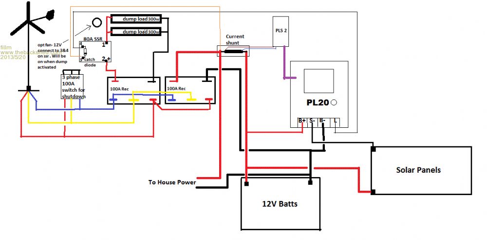 Below is a pic of a wiring Diag I did for a customer with one of the 500W kits I sell and shows resistive loading and SSR, he is completely of grid and , note the PLS2 is not required unless the wind input needs to be added to Total Ahr/In as well . His Battery bank is Hi Quality 1500Ahr Schonhiesens , so a decent investment