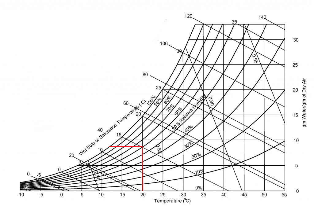 The red lines show "typical" ambient conditions, 20 Celsius and 60% humidity.