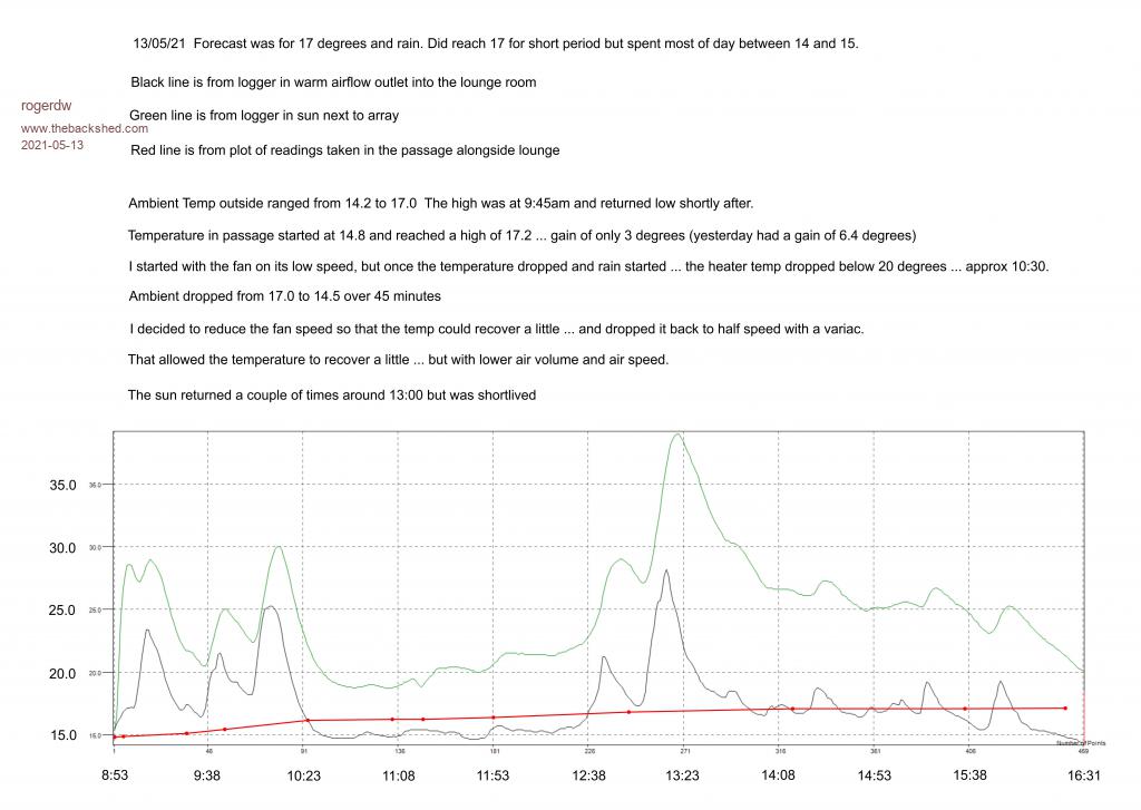 Tomorrows forecast is for the same, 17 and rain  ...  but the next few days are 17 and 18  ...  but with a bit of sun. That should supply results similar to yesterday so am looking forward to that.