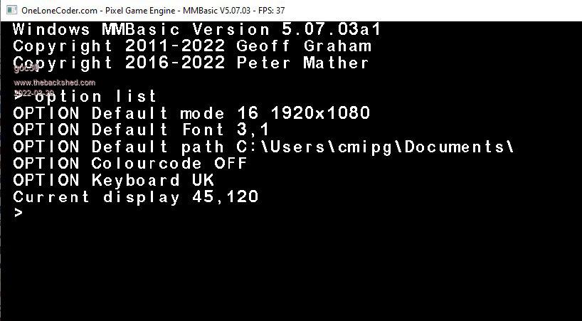I would like MMbasic for windows to respect the basic rules and for example, when using the windows resolution, "MMbasic for windows" does like 999 999 999 applications, and positions the point 0,0 at the top left of the window and not under top horizontal border, as it does with mode 16 in 1920x1080 screen resolution |