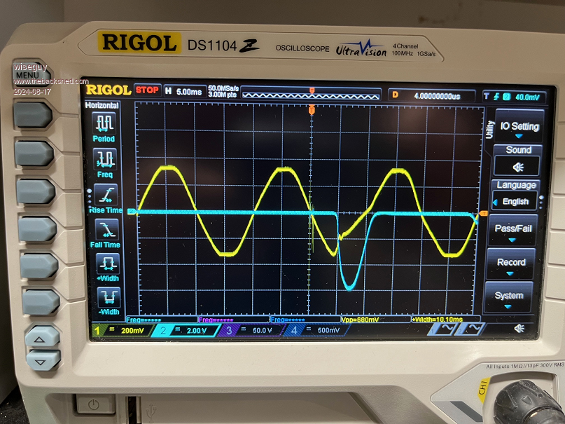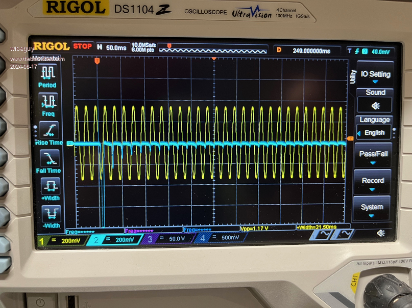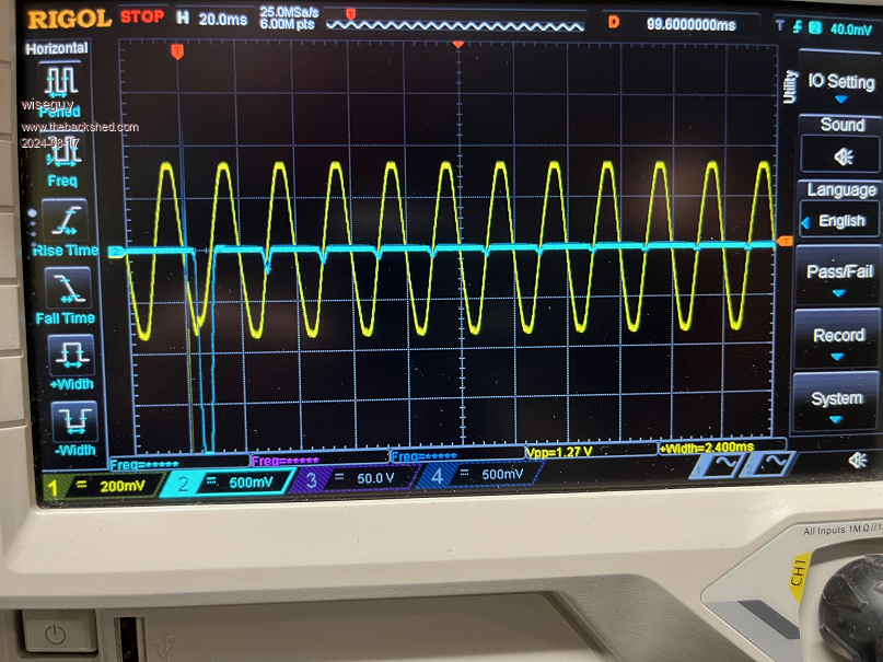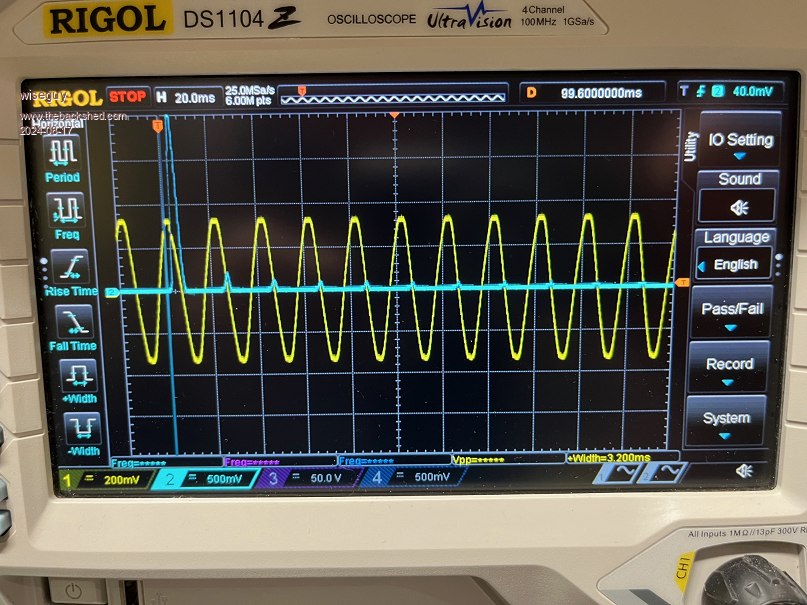 In the following screen shots the yellow mains had a 1000-1 divider so 200mV = 200V.