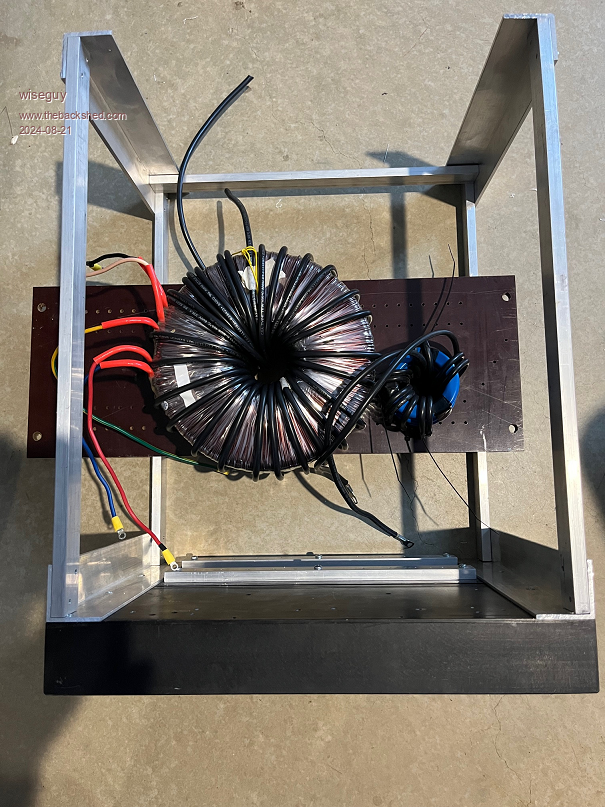I am busy building up my own 2 stage inverter, it is using 2 Aerosharp heatsink modules and lots of 10mm x 25mm Aluminium lengths and 4mm x 4mm aluminium angles etc.  So far I have the frame built, I have also wound the primary for one 3.5kW Toroid, another still to do, I used some 10mmsquare cable I had to hand (time will tell) and I decided to add a 17T overwind to the 195T secondary to match the other 212T winding for lowest secondary losses - & so much more still to do.....