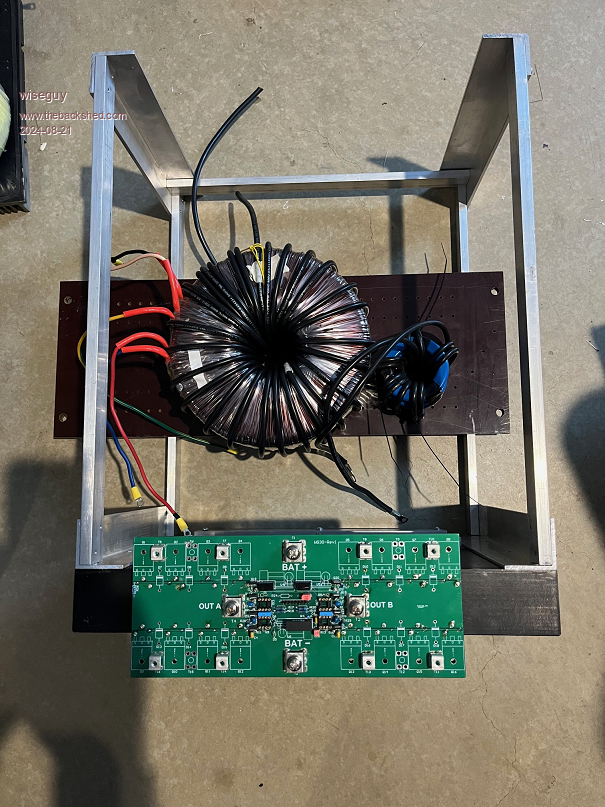 I going to get the dual inverter working as a single stage unit first, then I can take the current inverter off line and take the Toroid and chokes across to the new inverter and minimize the time on mains power.