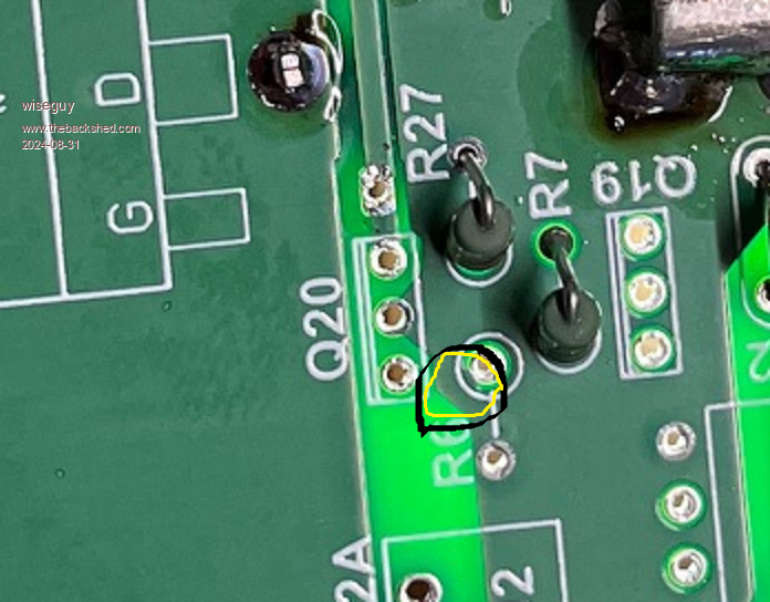 I just had a look at the 2 power boards and around R6 looks the same as in your photo above, I will have to get to it using the big illuminated magnifying glass.