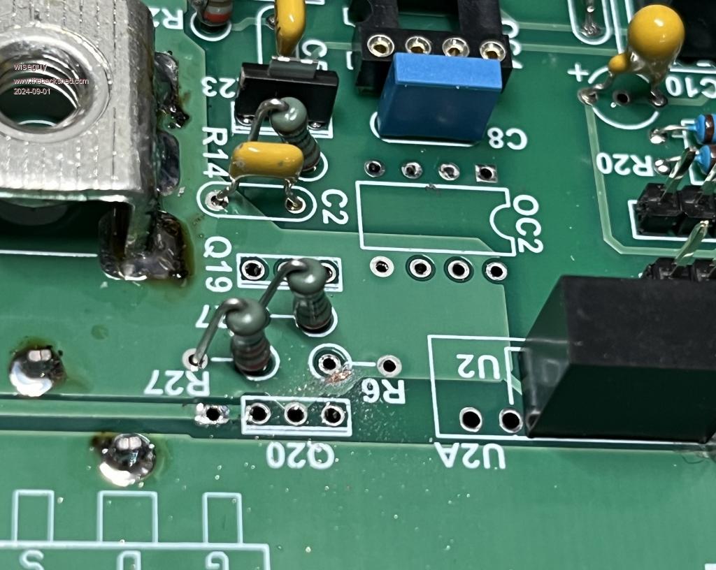If anyone would rather replacements (assuming JLCPCB will come to the party) I am happy to send out their replacements if you are happy to pay for postage.  If you have already loaded the parts and dont have a good solder sucker I suggest sacrificing the 1K resistor by cutting the leg at the top and then pulling both halves out after heating with the iron and using solderwick (I call it "track lifter" - be careful!) to clean out the holes.