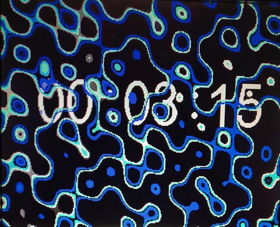 Plasma Watch ![]() ![]() MODE 2 Map Reset Dim integer CM(15)=(0,15,7,3,1,0,0,0,0,0,0,0,0,0,0,0) Colour Map CM(),CM() FRAMEBUFFER LAYER FRAMEBUFFER WRITE L r=Rad(35) For Y0%=0 To MM.VRES For X0%=0 To MM.HRES h=0 For i%=1 To 3 x=(X0%-10)/i%:y=Y0%/i%:a=r*i% C0=Cos(a):S0=Sin(a) s=x*C0-y*S0:t=x*S0+y*C0 h=h+Sin(s/5)*4+Sin(t/7)*5 Next Pixel X0%,Y0%,Map((h+64)Mod 16) Next :Next FRAMEBUFFER WRITE N XCntr%=MM.HRES\2:YCntr%=MM.VRES\2 XC%=XCntr%:YC%=YCntr%:CC%=1 XDir%=1:YDir%=1 Do TC%=CM(1) For i%=1 To 14:CM(i%)=CM(i%+1):Next CM(15)=TC% For i%=1 To 15:Map(i%)=CM(i%):Next Map Set Inc CC%,-1:If CC%=0 Then CC%=15 CLS Text XC%,YC%,Time$,"CM",6,,Map(CC%) Inc XC%,XDir%:Inc YC%,YDir% If XC%>XCntr%+32 Then XDir%=-1 If XC%<XCntr%-32 Then XDir%=1 If YC%>YCntr%+95 Then YDir%=-1 If YC%<YCntr%-95 Then YDir%=1 Pause 50 Loop |