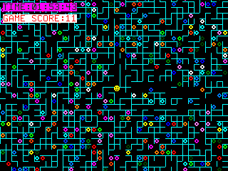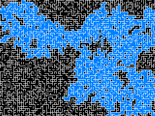 Fill Maze ![]() MODE 2 CLS S=4 W=MM.HRES\S H=MM.VRES\S For Y=0 To H For X=0 To W X0=X*S:Y0=Y*S If Rnd>.5 Then Line X0,Y0,X0+S,Y0 If Rnd>.5 Then Line X0,Y0,X0,Y0+S Next Next Do X=Int(Rnd*W)*S+2 Y=Int(Rnd*H)*S+2 Fill X,Y,Map(Int(Rnd*15)) Fill X,Y,0 Loop |