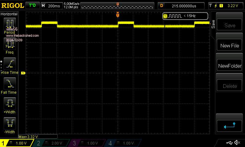 Hi, To me it looks like it is switching between weak pullup and weak pulldown. Where it should be between weak pullup and output low. Maybe the wrong bit is set in the data direction register for the TEMPR driver. This could be a result of Peters experiments with the 2350 GPIO problem. Volhout Edited 2024-12-09 05:51 by Volhout PicomiteVGA PETSCII ROBOTS |