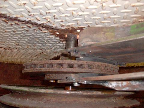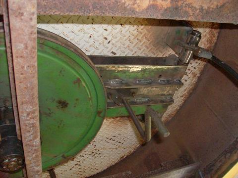 Vawt, going in a big way... I needed to make one more trip after tools so I brought along the camera... This is a break...don't look much like one, but it is. I installed a smaller drive pulley just over the original pulley, and in doing so the allowed space for the hydralic break caliper was reduced...did'nt find out untill I had everything back together that I did'nt have enough room. So I made up this system to replace it. This is the break pad end, "duh", as you can se there is'nt a whole lot of room up here...I had trouble getting this picture. ....Mac46 I'm just a farmer |