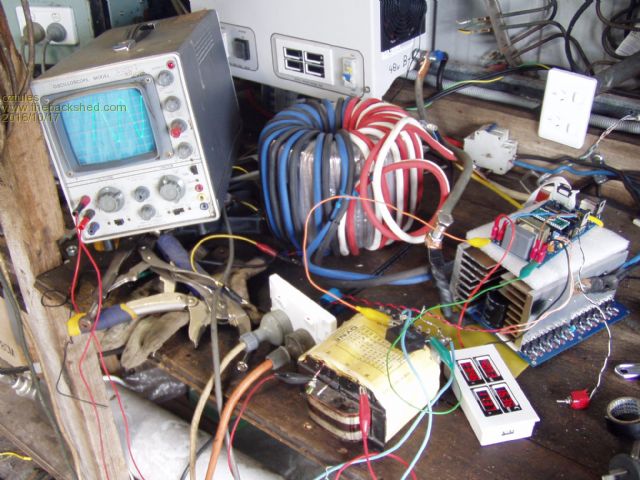 Sharp eyes may notice a few little torroid rings there, and this is using a torroid ring from a sharp GTI for the filter... ran out of e cores... seems to work just as well, but other torroid rings in my possession do not work very well at all with low turns on them.