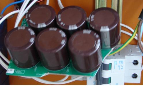 Hi Robbo, I assume this question was directed at me? A 7phase doubler, requires 7/3 times more capacitors and rectifiers for a std 3phase arrangement. This would not be a problem electrically. This would require 28 caps and 8 bridge rectifiers. My doubler is a 4x3 hotmelt glued block of 330uF,400V caps, with rectifiers wired together, atttached with standoffs to the caps. The AC from the mill is connected to the cap connections down the middle. For a 7phase, I would just make a 7x4 block. This doubler is placed in parallel with the normal 7phase rectifier. Windmill cutin rpm will be halved. Here is a pic of my capacitor, voltage doubler. The doubler is the block in the centre bottom. The meter is reading the DC output. The block arrangement keeps the cap & rectifier interconnects as short as possible. There is less risk of shorts and mistakes as well. Gordon. PS This is only a temporary arrangement, conected with clip leads. In this instance, the grid connect inverter is connected as well as the 24V battery. The purpose of the doubler in my application is to reduce the loading on the battery boost DC-DC converter. The caps seem to be more efficient than the inductor/mosfet/diode, but there is no voltage regulation or current limiting components. I have measured 140VDC on the caps, with the grid connect inverter disconnected, but the battery still connected. I intend to add a detector to the grid inverter to enable the doubler only when the inverter is supplying power to the grid. This may be a custom made optocoupled/isolated 3phase SSRelay, that will reduce the voltage protection needed to the battery only, that is already in place. The capacitors I used in the doubler were 330uF, as these were a value I had 12 of. This may be too high. 100uF may be a better value for a 7phase. become more energy aware |