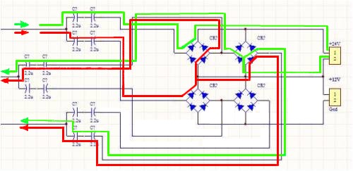 I note the caps in the shorted legs (red)are in parallel with the load and all current passing through them is lost to the battery. Once saturation of the red caps is achieved, the seriesed caps(violet) will then pass current and this circuit includes the battery. Back-to-back caps in series and parallel and called a voltage doubler???? You don't seem to be aware of any of the processes at work here. But so long as you are happy with the results. Gill EDIT: Haa! I see now. On the negative 1/2 cycle the former serisied caps are now in shunt and are charged to saturation then the former saturated shunt caps are now in series and discharge as a charge pump through the battery. The voltage is effectively doubled. OK. So why don't you explain it simply without all the crap? was working fine... til the smoke got out. Cheers Gill _Cairns, FNQ |