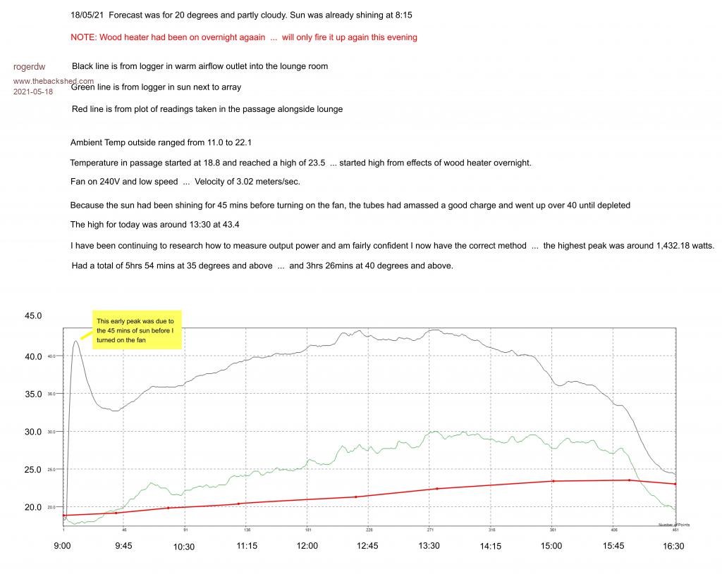 I noticed the sun out at 8:15, but didn't want to change the routine and logger charts, so hung off until 9am to turn them on.