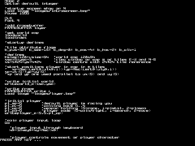 Hi Martin, One final thing I am thinking about is adding the index files also to the library. Then you have everything in one place. I would make a program based on the loadindex sub in pet13 that writes creates a new program "index.bas" The index.bas would look like this option default integer dim tile_index(&hff) tile_index(0)=&hxxxxxxxx 'this is an absolute address in library tile_index(1)=&hyyyyyyyy etc... tile_index(255)=&hzzzzzzz dim spr_index(&h60) spr_index(0)=&haaaaaaaaa etc... If I add that to the library with library save, all index arrays are created and filled before the main program starts, and point to the right location in this library. So a library will have a consistent set of data and indices. With a single LIBRARY DISK LOAD you would be ready. Then RUN "PETROBOT Volhout Oh yes... the font.... Almost forgot about that... Looks nic, but readability is less tat the original font. But good for game mimicking. Edited 2023-10-04 22:37 by Volhout PicomiteVGA PETSCII ROBOTS |
