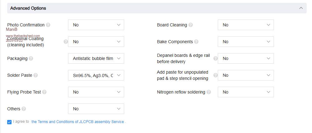 Hello Peter, many thanks for your great work. As already announced, I would now place my first order at https://jlcpcb.com/. I have uploaded the zip file of the Gerber files and adopted these settings. Is that OK so far? ![]() ![]() ![]() ![]() |