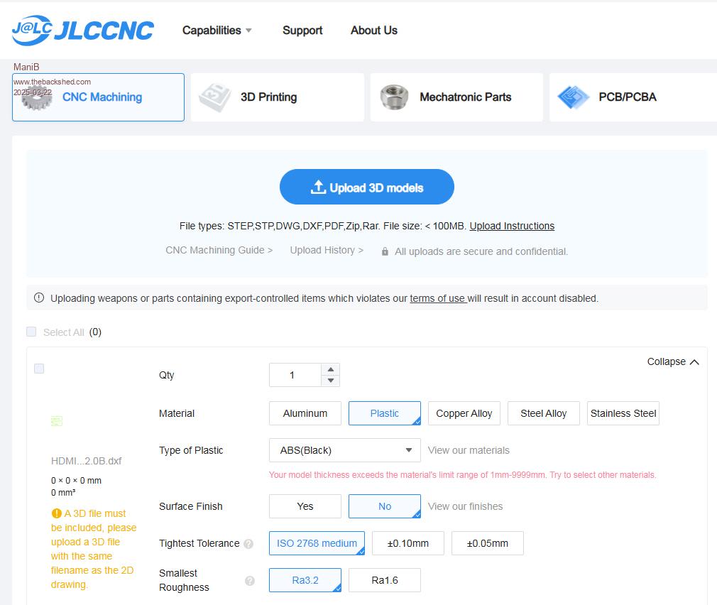 I have tried this with CNC Machining, but after uploading the .dxf file I get this message: |