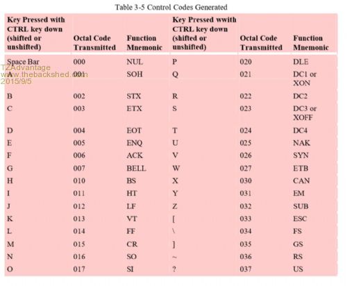 What should we do with keys that are combined with Control. Ctrl+C is obvious but which other ones would be valid and/or useful. The program also allows for a RAW mode that sends every key to the output so i don't need to do all combinations. I am particularly interested what it should do in VT100 mode and especially for when it is used as a keyboard for a Mite. edit: found something with google. And yes it was on Geoff's site. of course!