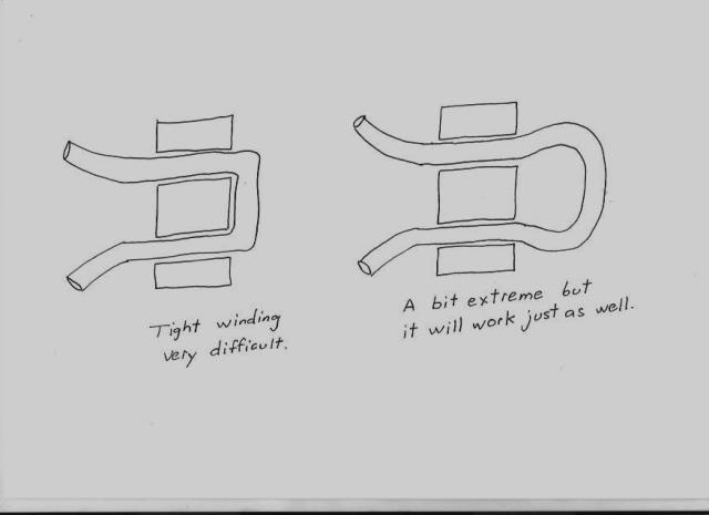 By doing a double core the number of turns halves from what a single core uses and the length of each turn is quite a bit less than on a single, so this leaves quite a bit of wire spare when completed.