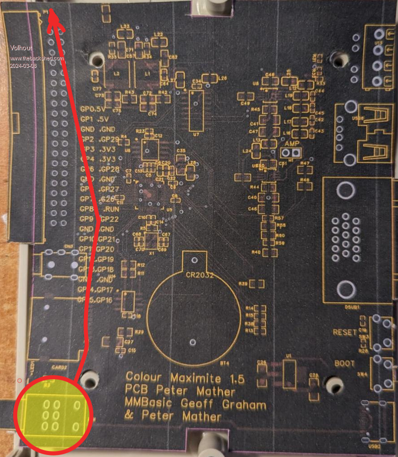 Maybe it fits... You could put the audio connector in it's old place. Alternative: change the 40 pin connector to something like 30 pin. The audio, video pins you would not route to the 40pin header anyway (like the non-USB board version 1.7). ![]() Edited 2024-03-08 05:01 by Volhout PicomiteVGA PETSCII ROBOTS |