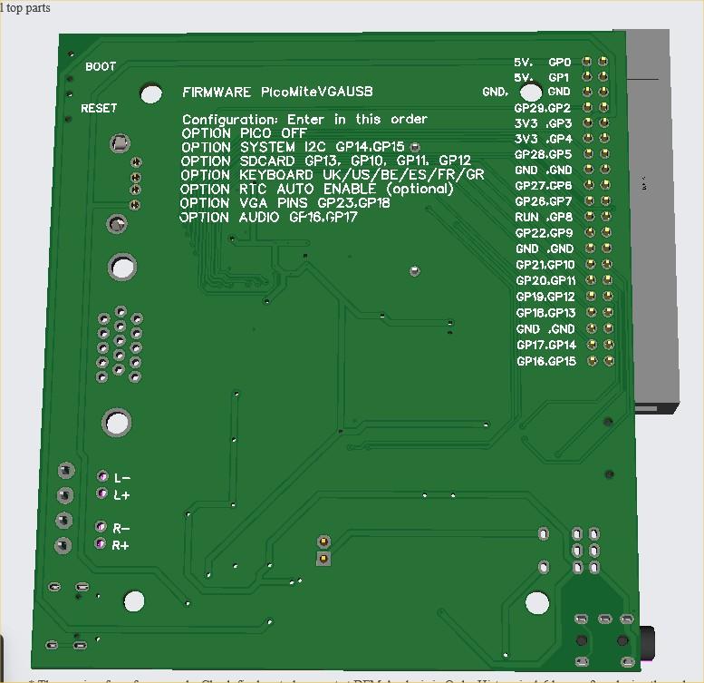 Daniel The Pico is fine for a standard VGA build but less than ideal for the USB variant. A USB keyboard will always want a USB-A to plug into. yes, you can use an adapter onto the micro-usb but you will soon find that you start to get a poor connection or accidentally pull the micro-usb off the board. Then you need to supply power to the Pico VBUS pin and add a usb-uart. I think the all-in-one board is much better and the cost is less than £25 fully assembled including 16Mbytes flash, RTC, amp, headphone jack etc. The idea of this build is a self-contained boot-to-basic computer (CMM1.5). Power-on and it works. The board is designed to fit into a readily available, cheap case and can be ordered ready-to-run from JLC - no soldering required. Horses for courses ![]() Edited 2024-03-14 07:19 by matherp |