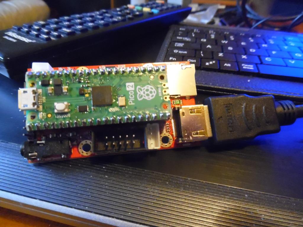 tried mode 1 to 5 with existing 2040 asteroids and bubble universe on olimex pico2 and from jittery to big to not enough memory for mod play. thing is it works through the hdmi and the sd card reader works. it's an old luxor tv and it has synced an stuff fine cos I got no remote. sound test next. link needed. maybe usb version but sort this first. hdmi don't seem faster than vga 2040. pico2 vga was faster than 2040 vga |