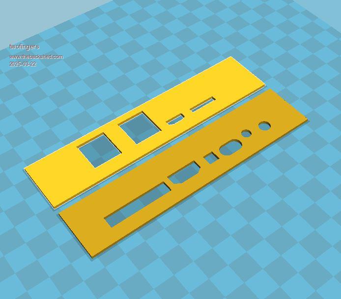 ... Hey PhenixRising, I'd be interested to know which tool you used. I couldn't find anything at https://jlcpcb.com. Sorry, I missed this. It's a pricey way to go (anodized aluminium) panels.zip I have zipped both the dxf and fpd files. Pete had both panels on one dxf and so I had to split them. |