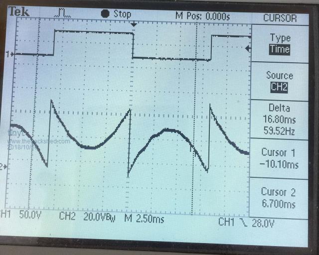Here is the waveform across the toroid primary.
