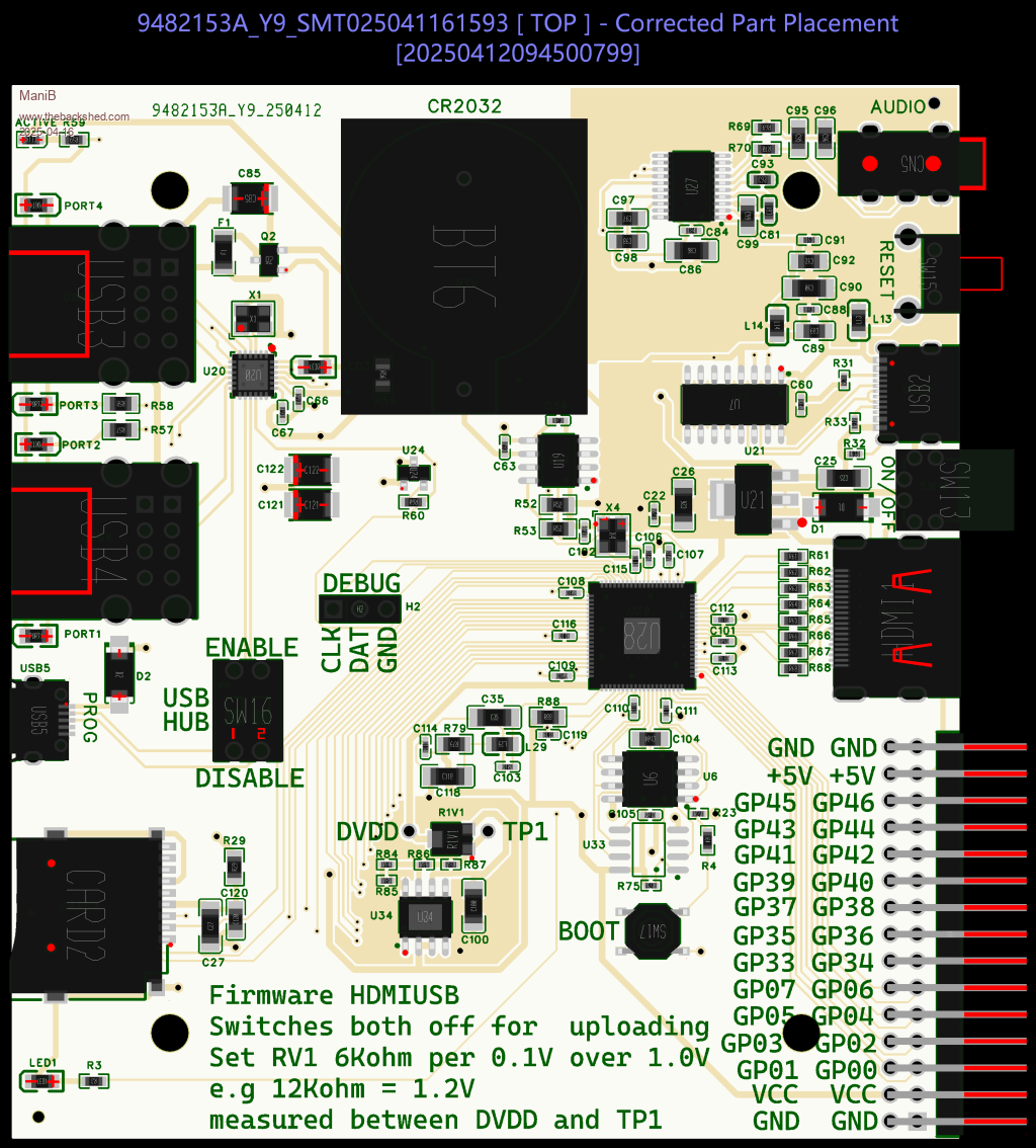 @Peter Mather I had a look at the DFM analysis of your board and downloaded the two pictures. I didn't notice any difference. ![]() But then I handed it over to AI Grok and asked to list the differences. This is the answer: The two images show printed circuit boards (PCBs) labeled "Corrected Part Placement" (20250412904500799) and "Original Part Placement" (2025041290823423). At first glance, they look very similar, but there are some differences I can identify: 1. Component placement at C85 (top left): In the "Corrected" image, C85 (near PORT4) is present. In the "Original" image, C85 is either missing or not populated. 2. Labeling at SW16 (USB HUB): In the "Corrected" image, the "ENABLE" label at SW16 is clearly visible. In the "Original" image, the "ENABLE" label at SW16 appears less clear or is missing. 3. Resistor R33 (top right): In the "Corrected" image, R33 (near the AUDIO label) is present. In the "Original" image, R33 is either missing or not populated. 4. Component C104 (right center): In the "Corrected" image, C104 (near U21) is present. In the "Original" image, C104 is either missing or not populated. 5. Labeling at U24 (center right): In the "Corrected" image, the labeling at U24 (near C107) is clearer and more distinct. In the "Original" image, the labeling at U24 is less clear. Contextual Interpretation: Since the "Corrected" image is marked as a corrected version, the differences suggest that missing or incorrectly placed components (like C85, R33, C104) were added or fixed. The clearer labels might also indicate revised documentation or an improved layout. Conclusion: The differences are subtle but mainly involve the addition or correction of components and the clarity of labels. The "Corrected" image appears to be an improved version of the "Original" image, which aligns with the title. ![]() |