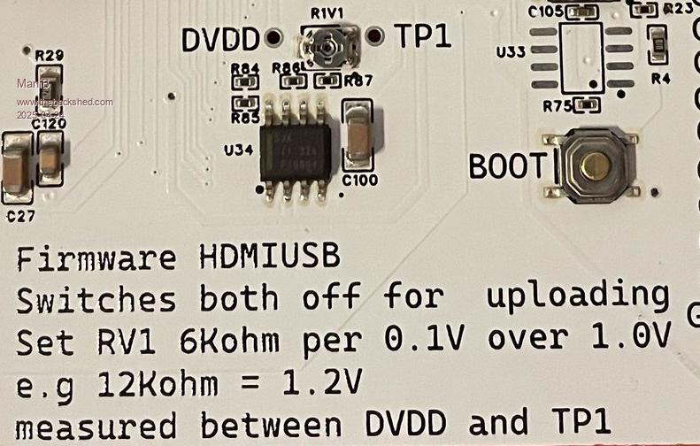 no, that doesn't work either ;( Here are my current options: > option list PicoMiteHDMI MMBasic USB RP2350B Edition V6.00.02RC17 OPTION SERIAL CONSOLE COM2,GP8,GP9 OPTION SYSTEM I2C GP20,GP21 OPTION FLASH SIZE 16777216 OPTION COLOURCODE ON OPTION KEYBOARD GR OPTION PICO OFF OPTION CPUSPEED (KHz) 252000 OPTION RESOLUTION 640x480 OPTION HDMI PINS 1, 3, 5, 7 OPTION SDCARD GP29, GP30, GP31, GP32 OPTION KEYBOARD REPEAT 250,25 OPTION AUDIO I2S GP10,GP22', ON PWM CHANNEL 11 OPTION RTC AUTO ENABLE OPTION COUNT GP0,GP1,GP2,GP3 OPTION MODBUFF ENABLE 512 OPTION PLATFORM HDMIUSBI2S OPTION HEARTBEAT PIN GP25 |
