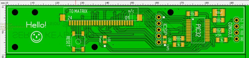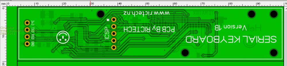 Hi Grogs, I've finally put mine together after waiting for the Chinese slowboat. Rather than run the ICSP lines out with the Rx/Tx/3.3v/Gnd cable I've modded the board (bit of a hack ) so that there is now a normal ICSP header available at the top edge of the keyboard. It fits pretty well and should be ideal for the occasional firmware re-flash.
