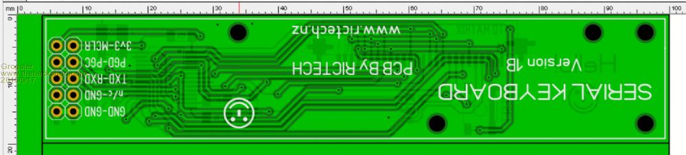 Here is the new PCB layout, with the console and ICSP all at one end of the PCB. Several other tracks were "Tided" in the layout, once the 5-way was gone.