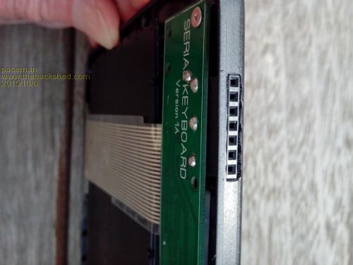 For this version, I wired up the ICSP to the connecting cable. I was unsure of just how legal that is with respect to the ICSP, but it seems to work just fine. The cable is quite short though - only about half a meter, as it is designed to complement an LCD unit that is right beside it, so no need to have a big long cable on it. The cable I used was an old 9-pin serial cable with the plugs cut off - that gave me nine cores and a drain wire plus foil. This arrangement allows for BOTH updating of the MMBASIC code via the console and XMODEM commands, or complete reflashing of the firmware via the ICSP, all on the one cable, without having to pull the KB to bits. You will note, however, that I have only used a tiny amount of VHB tape this time around, so that I don't actually have to destroy the KB to get it apart, if there is a next time. This one does not have the new PCB with the reset button in it yet. I am going to see if I can move the ICSP to the end with the normal console output, so that all wires can be soldered in the one place. However, this concept(ICSP over cable) is working OK. Smoke makes things work. When the smoke gets out, it stops! |