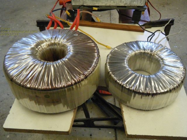 Thanks oztules,, I will be doing a similar test in a few days when I have wound on the new primary to another test toroid. This one is from the "well known Australian manufacturer", a 2500VA version. Just for a laugh I placed it next to an aerosharp toroid for comparison: ![]() The one on the left is the aerosharp 3000VA. 20% difference in power, difference in size?? Then I weighed each (fully wound): Aerosharp, 3000VA:21kg right side, 2500VA:11kg I think the "overrated" comment in an earlier message holds water. Klaus |