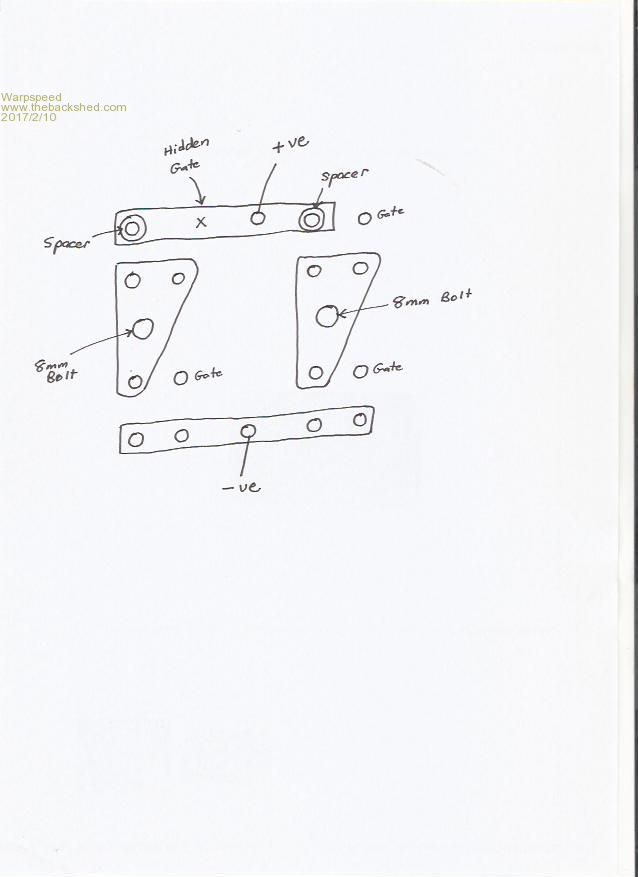 Grogster, the way I ran my big aluminium interconnections: ![]() The positive connection running across the top, (between the two drains) was elevated by placing steel spacers between the mosfet drain connections and the aluminium strip to clear the gate connection of the upper left mosfet. I drilled an access hole through this, so I could get a screwdriver onto the otherwise hidden gate connection underneath. A similar system would allow the drain to drain interconnection to pass right over the top of your upper left circuit board. Two monster wires are going to be coming from the toroid primary. In my case I used 8mm bolts and big lugs. This can put a big strain on the source and drain screws. What I did was make two (6mm) thick triangular aluminium plates to bolt onto both source screws plus the drain screw. That makes for a very rigid termination point for the heavy toroid wires, that will not flex and possibly fatigue the mosfet connections. For the two lower mosfets I ran an aluminium connection right across all four source screws. It involves a bit of fiddly work to get all the hole centres correct. But once all these parts are made, it all goes together and comes apart very easily. Cheers, Tony. |