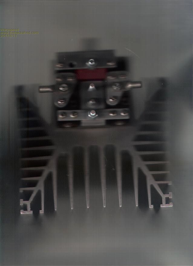 My camera is FUBAR, but I just had an inspiration. Sat the whole thing on my scanner. Its a crappy picture, but its there. The bolts for the toroid lugs are 6mm not 8mm. And those are not mosfets but large triacs that are the same SOT-227 package but only have three screws. Its really just a mechanical mock up of what I intended to do but never went through with it. ![]() Cheers, Tony. |