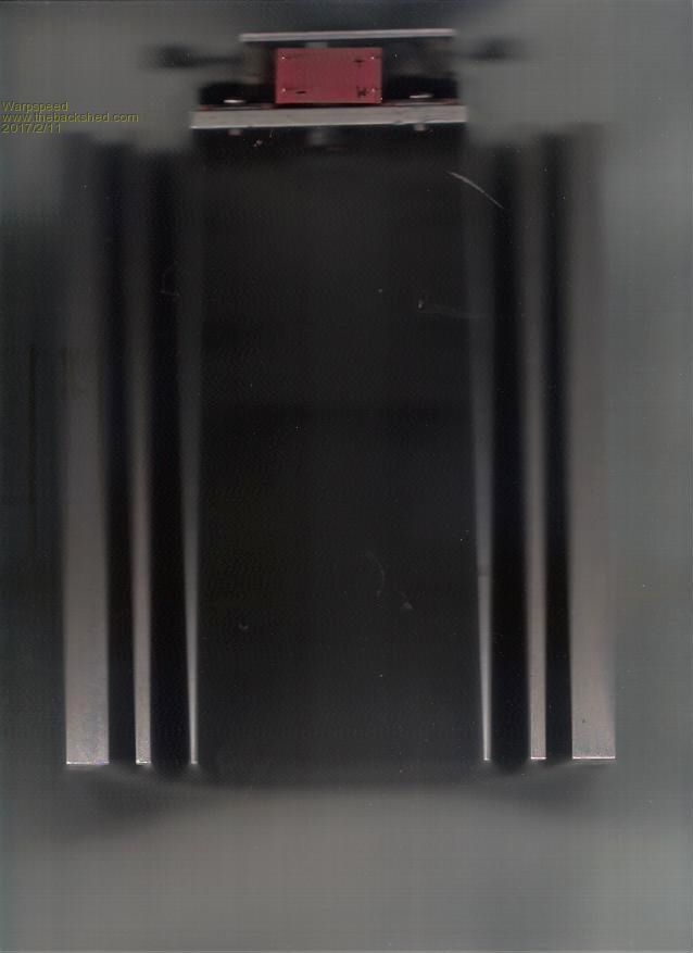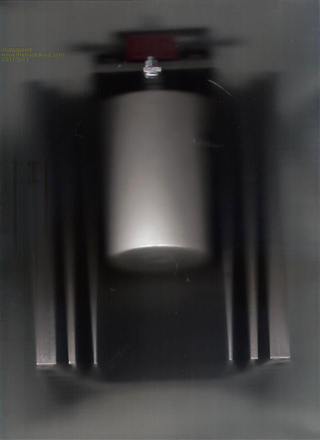 ![]() This is an even more terrible picture, but the electrolytic is mounted underneath the bridge. The ground terminal of the electrolytic goes through and is bolted to the heatsink "L" bracket and also bolts onto the negative side of the H bridge. Positive side of the electrolytic goes to the screw in the foreground, and also goes up through an insulated hole in the "L" bracket, through the middle of the (orange) current sensor to the raised aluminium link bar bridging the two drains. The orange sensor is a 150 amp Hall sensor which was going to support the main circuit board. A much better way to do this would be with a flat heatsink and the electrolytic mounted on top of everything else. I made things much more difficult for myself by wanting to use this particular heatsink because I already have several and wished to use them up. ![]() Cheers, Tony. |