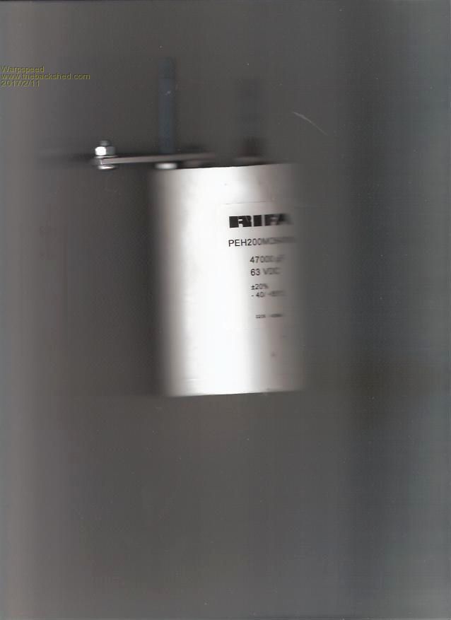 This shows the orange Hall current sensor and the drain bridging bar immediately on top. ![]() The RIFA capacitor with its two long 5mm threaded rods. ![]() Cheers, Tony. |