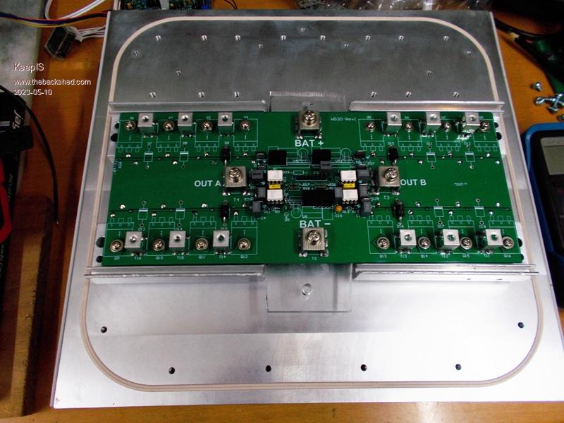 Thank If you look closely at the last picture I posted [08:03pm] you can see the thermal mat underneath the heat transfer bars. Thanks, if it does go bang, the great thing is, the way wiseguy designed the FET mounting and layout makes it so easy to replace the FETS, and along with the way I built it, there are just a six screws and the Power stage is removed from the big heatsink, a few screws and the Capacitor boards are off, and that's basically it. If I have a problem it's hardly any effort to fix, the only pain is figuring out why, but I'll cross that bridge when /if I get to it. . Edited 2023-05-11 08:07 by KeepIS NANO:Inverter V 8.2ks - Linux AvrDude GUI script V4.1 |