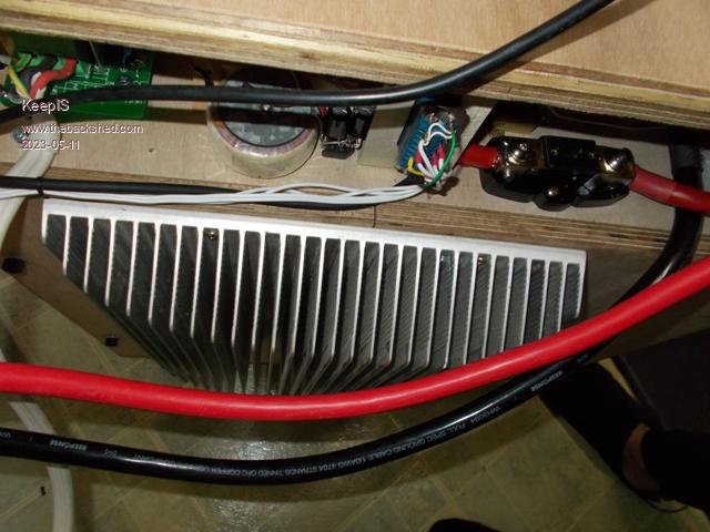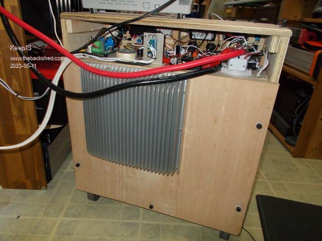 It took me a lot longer then I thought to mount the heatsink through the back of the Cabinet. The Back simply unbolts so nice to work on, once I was certain it would fit and remeasured about 20 times, used the Band saw to cut the hole and rounded over the inside edge. I fitted a total of 4 of the big 10,000 caps, cap boards can be removed and fitted in seconds thanks to wiseguys design, and the room I have ih there makes is even easier. Here it is mounted to the cabinet getting ready for it's first detonation, there is so much room in there now. Side view to show how little the Power board intrudes into the cabinet. BTW that cutout is not as rough as it looks, it's very thick marine ply and the little trim router did the best it could making a beveled edge, it looks really neat in reality. . NANO:Inverter V 8.2ks - Linux AvrDude GUI script V4.1 |