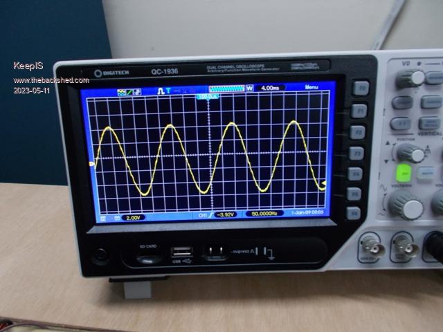 Bandsaw: less then a second @ 390A. Dust extractor: 2.5 seconds @ 520A. 3Hp Compressor 1 second @ 540A. Fans do not come on: The Toriod transformer is virtually silent. Idling on the bench at 300 watts with just the heat bars, one side got about 1 or 2 deg above ambient. It did that even with no load, and it was the FETS on the -48V side on both heat bars (they are split). Now, mounted to the Heatsink, it's impossible to know as everything is stone cold. Hopefully I will find out today under some sustained high power load. Fine, that makes sense, I was planning to run a Led out to the front panel. A: CRO pix is No Load: B: The Sinewave is perfect with loads over 1kW. C: Changing Choke values did absolutely nothing. D: Cap is 3.3uf and transformer resonances at 75Hz. All same values as with previous driver board. The Aerosharp Toroid with 4.4uf did exactly the same thing, even without any choke, identical waveform. Yes it appears to be harmless, looking closely at the trace, it's very very small and about the same level as the slight furriness on the waveform. This is after a 3 stage AC filter. The big thing though is this! - There is now zero interference from the inverter in my HAM radio transceiver. Big copper magnetic Loop TX Aerial is mounted just above the Solar panels. There were a few big spikes across the band on the old driver board, now there is nothing but clear signals and normal background noise . Edited 2023-05-12 06:34 by KeepIS NANO:Inverter V 8.2ks - Linux AvrDude GUI script V4.1 |
