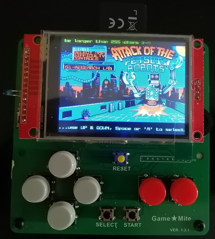 Now have lunch first and then continue to look at the menu ![]() No, I don't have the game running on the GAME*MITE yet, I'm currently just using it for the intro to make sure the controls are supported ---EDIT--- @Volhout Just tested 18j on the Pico-VGA It is getting better with every Update Sum issues here and there but you can see where it's going. I hope I'll get a version with intro ready tomorrow. It's moving towards the beta version Edited 2023-10-16 02:24 by Martin H. 'no comment |