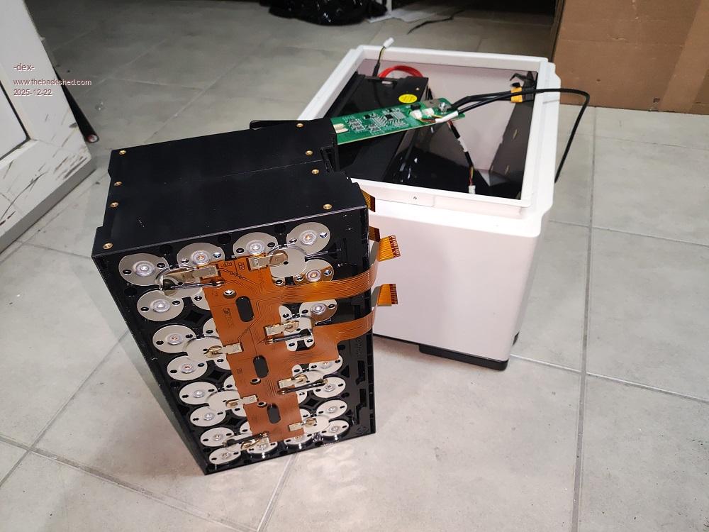 I have a similar commercial product here, very similar to yours, that failed. Actually, I have a lot of them. One single module contains two ~51,2V battery pack inside. They're 2 in series, providing a total of 102,4V. Two black boxes in one white box. These white boxes can be connected in few series, providing high-voltage storage up to several hundred volts. ![]() One black box contains a total of 32 cells in a 2P16S configuration. From reports from other colleagues in the market, I know that many commercial products use this type of cell. Oh... none of these inverters are LV inverters, or even those equipped with a toroidal transformer. As for my inverter - It's boring, nothing bad happens, and the house is constantly powered without interruption. Boring - in the positive sense of the word ![]() Edited 2025-12-22 21:28 by -dex- |