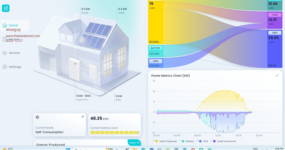 No we don't own an electric vehicle yet but in a few years it is on the cards. Yes I was aware of Sig's EV support and modules. I am posting the SIG PDF documents here that I have to hand as they will answer most queries. I am not on a finders fee or receiving commissions etc for Sig referrals...... After doing some research online, mainly from the UK, many of the premium installers there swear by SIG products and after seeing their installs and their efficiency & perceived reliability, I decided to bite the bullet. Initially I was only going to install 16kWh of storage but when the Government started the home battery subsidy scheme the cost of each 8kWh module was only around $1K9 extra so I decided to up the reserve to 48kWh and upgrade the inverter to 24kW 3 phase so on the nights where it doesn't get below 28+ degrees, then we can run the ducted air all night. The other advantage is that in winter where we typically only use ~ 6kWH per day we could have a week of essentially no sun and no Mains power and still be self reliant. Last night we did just that and this morning we still had 49% battery capacity remaining & no power consumption from the grid despite running the Air most of yesterday and the batteries started at sunrise yesterday with 0% charge remaining however we only returned ~ 3.5kWh to the grid around 4.00pm yesterday instead of ~ the usual 50-60kWh for a typical day at this time of year). Now we are starting at ~%50 storage capacity so I estimate we will export ~ 30+kWh today. That will help pay for the "supply" connection which even with no power drawn is $2.19 per day, whilst receiving a whole 0.09c per kWh returned but being charged 68.92c per kWh consumed at the peak rates (where we usually had to consume energy outside of solar generation). Thanks Engie (our provider) what a great deal..... Sig Warranty: Warranty-Document-Sigenergy.pdf Sig Spec sheet: Spec-Sheet-Sigenergy.pdf It does not state implicitly the battery warranty but it implies 10 years which is what sales said (yeah I know) - I will ask for further clarification. Edited 2025-12-19 08:38 by wiseguy If at first you dont succeed, I suggest you avoid sky diving.... Cheers Mike |
