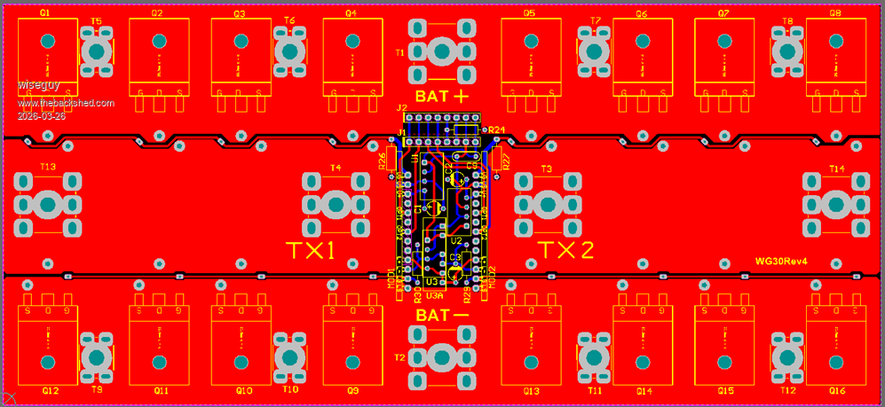 The power PCB: ![]() Cap PCB: ![]() Half Bridge Module, front & back ![]() ![]() sorry for the slightly different sizes for front and back designs.... Edited 2026-03-26 14:18 by wiseguy If at first you dont succeed, I suggest you avoid sky diving.... Cheers Mike |