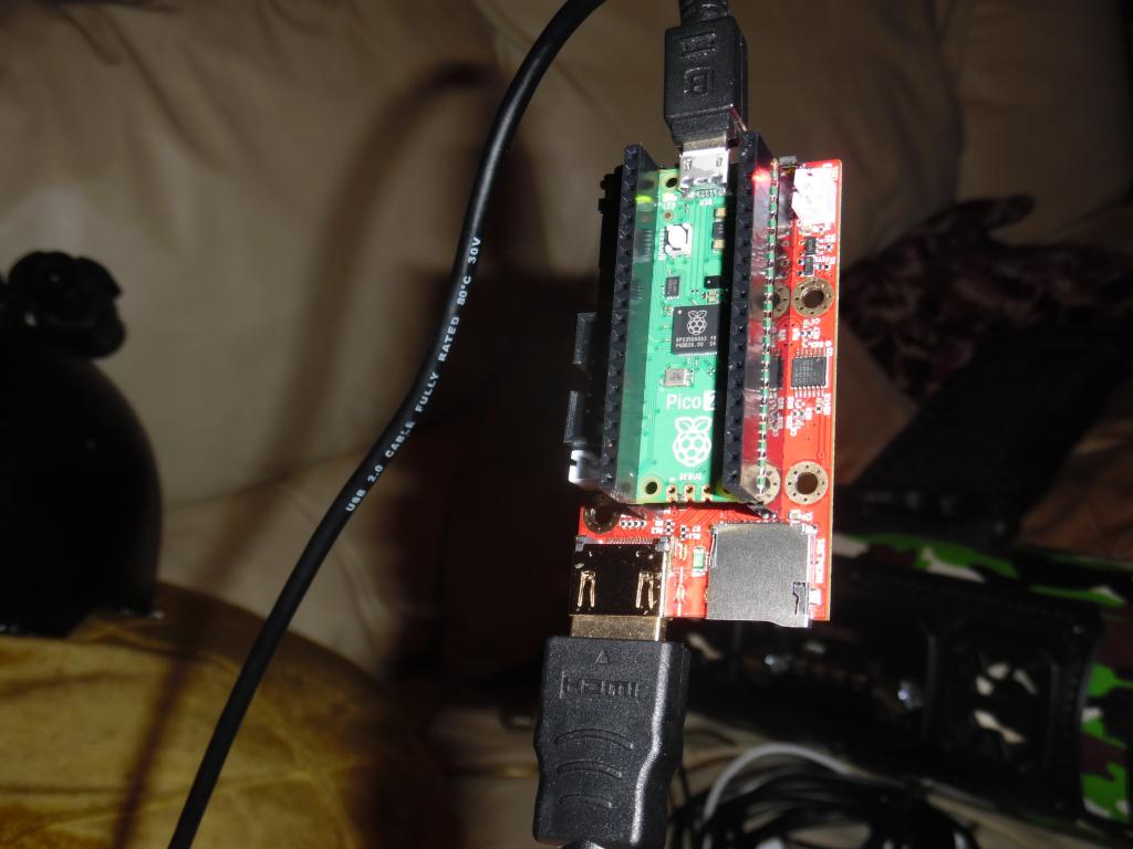 I think this is relevant > option list PicoMite MMBasic Version 6.00.00b3 OPTION SYSTEM SPI GP18,GP19,GP16 OPTION AUTORUN ON OPTION FLASH SIZE 4194304 OPTION KEYBOARD UK OPTION CPUSPEED 378000 'KHz OPTION LCDPANEL ILI9341, LANDSCAPE,GP15,GP14,GP13 OPTION TOUCH GP12,GP11 GUI CALIBRATE 0, 3891, 3866, -893, -647 OPTION SDCARD GP22 > b: > files B:/ <DIR> DCIM <DIR> SYSTEM 01:37 01-01-2000 0 bootcount 19:26 01-08-2024 68506 RISsound.mod 16:48 30-08-2024 44556 sfx-bg.mod 22:39 29-03-2023 55342378 t1.wav 21:11 02-04-2023 65642368 t2.wav 2 directories, 5 files > reads sd card fine olimex 2350/pico2 hdmi says no files as does pico2 usb vga. they worked before ? |