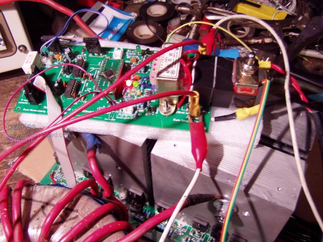 pics..... Here we can see the new switch.... glued to the caps... but no longer used... started to pulse at 4kw..... notice the jumper lead across the pins instead.