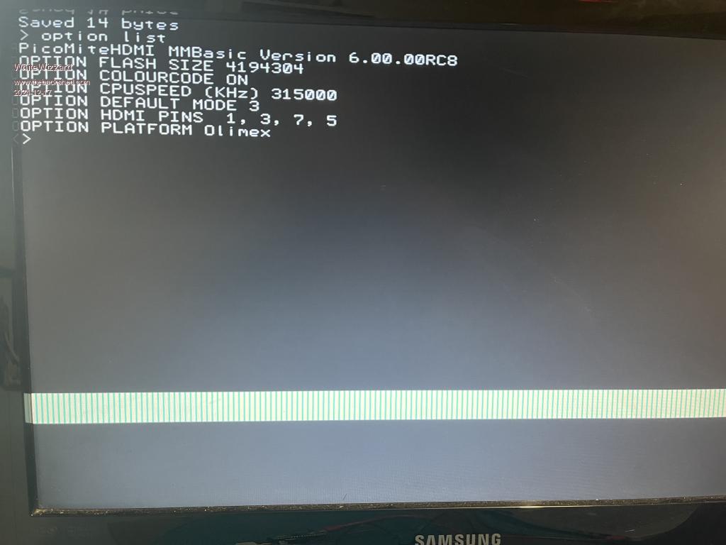 With OPTION DEFAULT set to either 1024 or 1280, setting OPTION DEFAULT MODE 4 causes the HDMI display to show no signal (black screen). It is not hanging the HDMI Pico as Tera-Term is still interactive. Could this be a monitor syncing issue OR is it a 'feature' (I only have one HDMI monitor where I am at the moment). NOTE: If resolution is set to 640 then MODE 4 works. Also, all other modes (1,2,3, and 5) all work across all resolutions. |