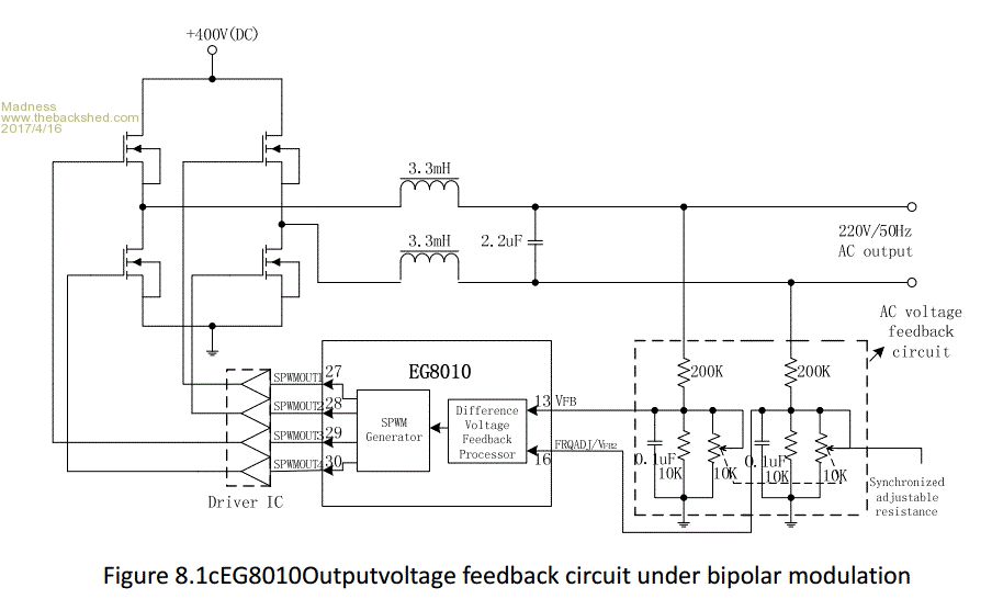 Nice little unit. I expect it would drive a normal house just fine. If it does not get hot... ignore the waveform, see how it runs longer term if you can keep the house loads under say <4kw for 10 minute periods, and <2kw for most of the time. That would be most houses off grid. Check the leg connection of the 8010 to the circuit board.... maybe intermittant fault in there somewhere when it runs for 10 days and fails. What was the sine wave like when the heats sinks were not attatched? ........oztules Village idiot...or... just another hack out of his depth |