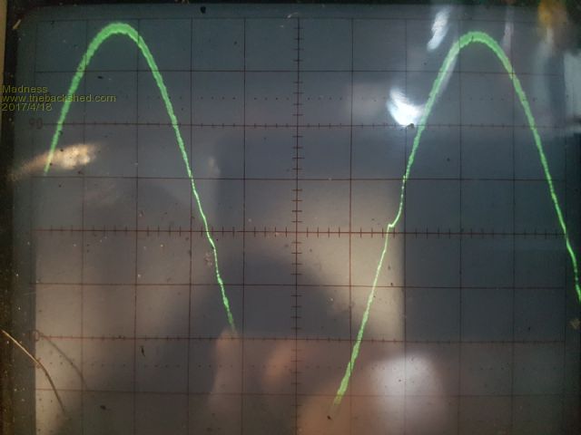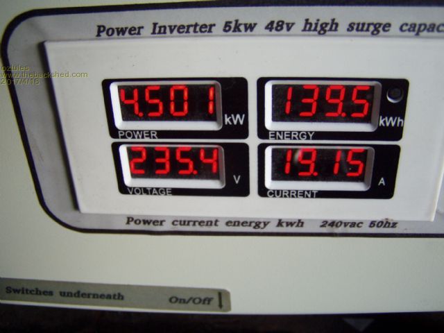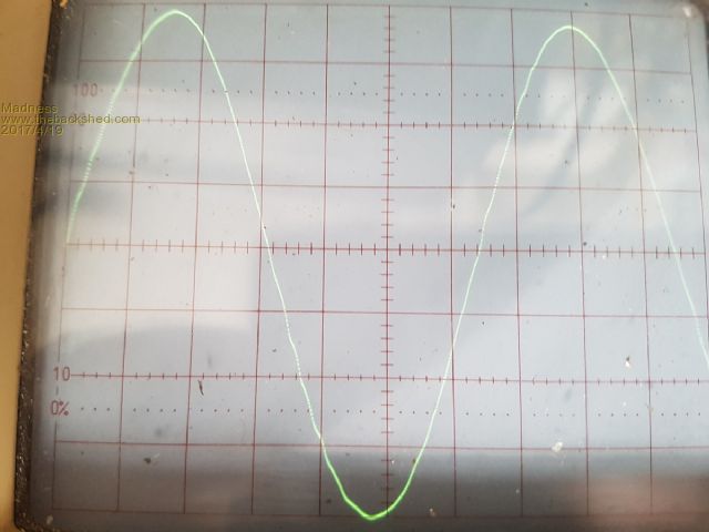 i still just don't know why... walked out to the shed, turned on the scope, the unit was doing 4-5 kw, and the wave was perfectly shaped but for a slight zero cross over on one side of the wave only. I just cant see why yours is warped and mishapen.. danged if I can... it is annoying, as your board looks the full monty too ... very nice..I wish I knew why. Wave at 4-5kw ( see next pic for figures ) Curent status is: So this one has been under test for 140kwh Mad, this one is running 4 hy4008 on the outputs, still does the 20kw thing for the 5hp motor... so 6 is excessive for this size unit I think. The waveform barely differs from the 6x4110's, but easier to build and cheaper on the fets too ............oztules Village idiot...or... just another hack out of his depth |
