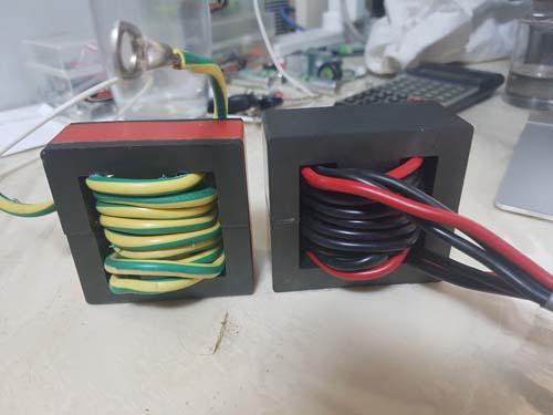 The Inductor: Earlier I compared one inductor to another. The big one which saturated with too low current, (the one on the right) ![]() had I think 5 turns and no gap. I rebuilt it today with a gap. Now it's 37uH with 8 turns. Here is the gap I chiselled with blunt instruments. In my view the magnetic field in the air gap does not care very much how good the workmanship is with the cutting of the gap. There are still remnants of the epoxy on various edges too. I made a gap of 1.5mm ![]() How does it perform, with 108V input, 2kW out and 20kHz pwm? Recall this test shows clear signs of saturation with all the combinations of inductors I have tested so far. Really well as it happens. This is all I need for the controller. ![]() (from the DSO) zero current = 2.53V peak to peak current is 0.42V average current is 3.4V with a current sensor giving 0.0202 V/Amp we can see the average current through the inductor (and through the load too) is (3.4 - 2.53)/0.0202 = 43 Amps. This is confirmed by the current sensor on the output of the converter board. The ripple current is 0.42 / 0.202 = 20 Amps. This is sort of 50% ripple. It might lead to heating up of the output capacitors. But no saturation. I thought I would eventually arrive at a suitable inductor. I like how this one can cope with 20kHz pwm. Even though I test to 2kW and the design output power is 45A at 57V which is 2565W I think this will be good enough. I doubt many of us will have a battery sucking 45A at this absorb voltage for hours on end, assuming a 48V lead acid bank. And here it is at 2450W ![]() this is good. I will do the same thing with the RS components ferrite core pairs that are available and are quite affordable (RS Stock No.647-9367) when they ever arrive. First test with zero gap, then with 1mm, then with probable end choice of 1.5mm After 5 minutes at 2kW, the output caps are still cold. So 20Amp ripple is no problem. Edited 2020-05-31 18:13 by poida wronger than a phone book full of wrong phone numbers |
